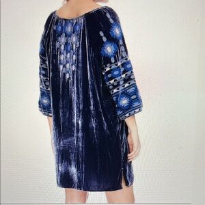 Johnny Was Nomi Blue Velvet Peasant Dress