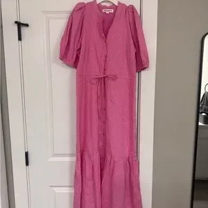 Chic pink robe with eyelet details. Soft and stylish. Ideal for lounging.