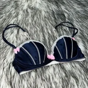 Victorias’s Secret Sexy Little Things Navy Damask Balconette Push Up Bra 32C