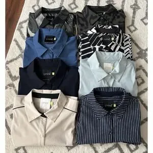 LYSSE Lot Of 8 Solid Prints Button Down Wrinkle Resistant Career Blouses Tops