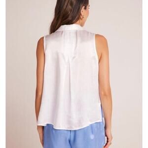 Bella Dahl Sleeveless Satin White Notch Collar Button Down