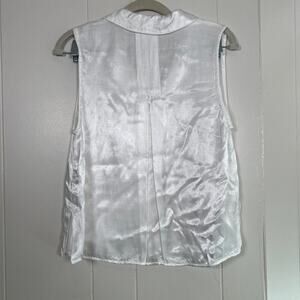 Bella Dahl Sleeveless Satin White Notch Collar Button Down S
