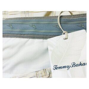 Tommy Bahama Mens Tan Checked Woven Pockets Bermuda Golf Shorts Sz 30 New