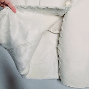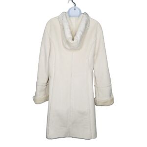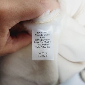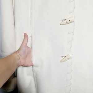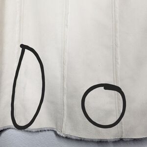 Condition is preowned. Does have a couple of spots on the exterior faux suede. Please see last photo. Coat is machine washable. Spots have not been treated.