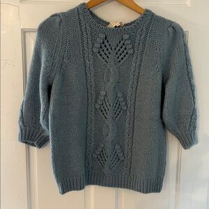 SEZANE Light Blue Mohair Wool Knit Short Sleeve Cableknit Sweater Pull Giulia