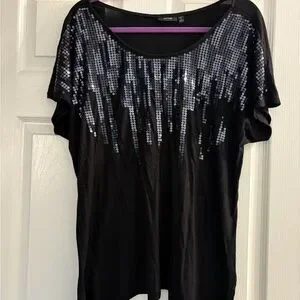 NWOT Stylish black top with shimmering sequins. Perfect for a night out. Sequins are black (just the shine from lights)