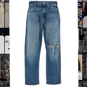 7 For All Mankind Mid-Wash Distressed Relaxed-Fit Jeans in Size 32