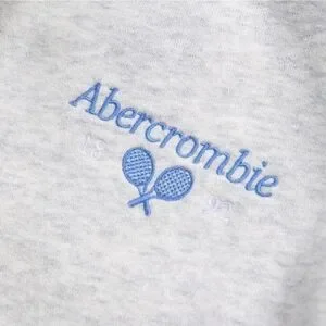 Colors: Light Grey Heather w Light Blue & White embroidery that reads, "Abercrombie 1892" on front left chest w 2 tennis rackets or pickle ball rackets & "Abercrombie & Fitch" Across the back
