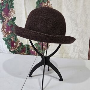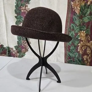 This elegant brown PLATANIA women's wool bowler hat is a perfect accessory for any occasion. Its rich brown color adds a touch of sophistication to your outfit.