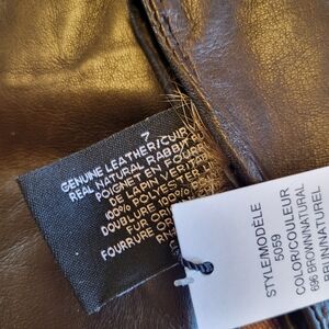 Lord and Taylor dark brown leather gloves with beige rabbit fur, fully lined.