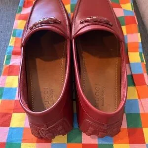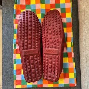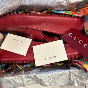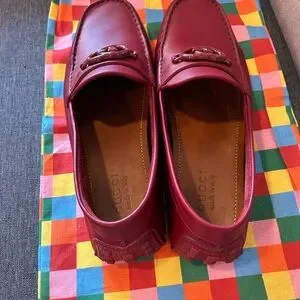 Elevate your look with these bold red Gucci loafers. Sleek design meets luxury craftsmanship. Ideal for any stylish occasion.