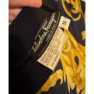 Auth. Vintage Salvatore Ferragamo Scrolls Printed Silk Blouse. Size small. Pre-loved. Ptp measures 17-18.5 inches across. Blouse length is 22.5 inches. No snags, runs, stains, etc. No flaws noted. Very well cared for. Beautiful year round piece. (#425A)