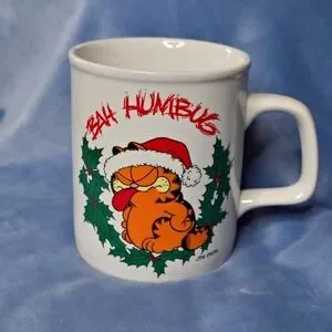 Vintage 1978 Enesco Garfield Bah Humbug Christmas 11oz White Ceramic Mug
