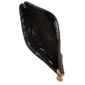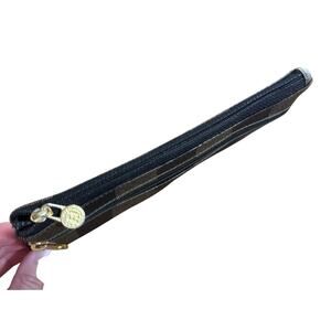 Auth. Vintage Fendi Pequin Canvas Zip Pouch. Measures 8 inches long by 4 inches tall. Please note the interior lining has started to come loose. It can be removed fully or taken to be professionally replaced. Otherwise the exterior canvas, glazing & hardware is in excellent condition. No tarnish or color loss to gold hardware. Harder to find vintage piece. (#428A)