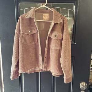Altar'd State Corduroy Shacket in a beautiful brown shade, size Small. This versatile piece combines the style of a shirt with the warmth of a jacket, perfect for layering during transitional seasons. Features include a collared neckline, front button closure, and two chest pockets. Made from soft corduroy fabric for comfort and a touch of vintage appeal. Ideal for casual outings or dressing up a simple top and jeans. Excellent pre-owned condition, very well maintained.