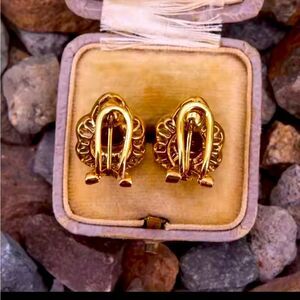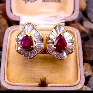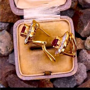 Gold Ruby Cubic Zirconia Diamond Earrings New in Gift Box Large 1.5 inch’s