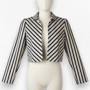 80s Vintage Gold Black Striped Silk Blend Cropped USA Made Power Blazer Size 12