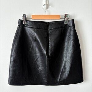 Aritzia Wilfred Patio Mini Skirt Vegan Black Leather Side Slit Size 8