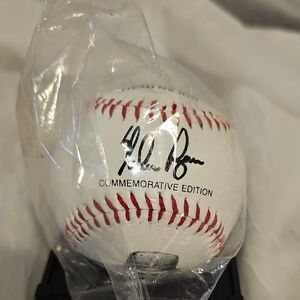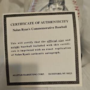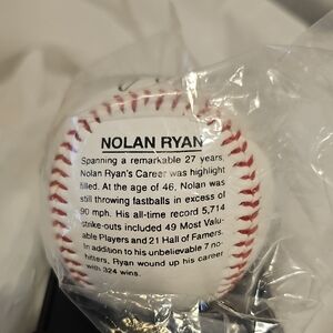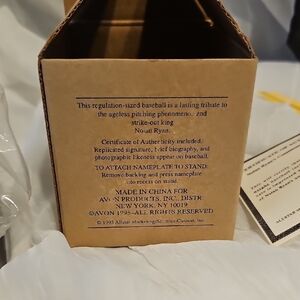 Avon collectible baseball featuring a detailed portrait and information on Nolan Ryan's Career. Perfect for sports enthusiasts.