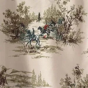 About the Print The Equestrian Toile print is a vintage wallpaper panel sourced from the Design Library and features warm colors on a classic khaki-colored base.