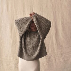 Gray Cable Knit Crew Neck Sweater
