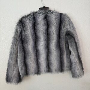 Experience luxury with this elegant faux fur teddy jacket in gray. Perfect for adding a touch of sophistication to your wardrobe.