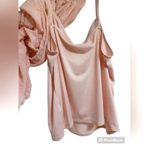 Pink Blouse with Built-in Spaghetti Strap Tank Top Women's 1X