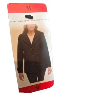 Elegant black pea coat by Andrew Marc. Features a classic design with button closure. Ideal for cool weather.