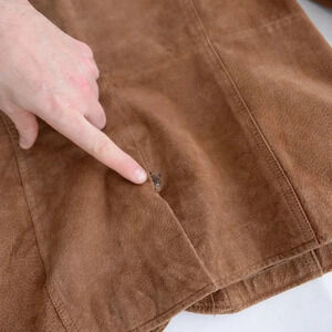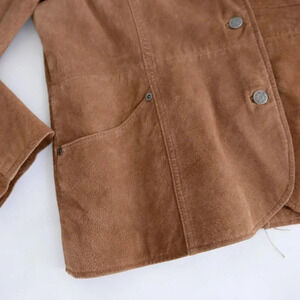 Wrap yourself in vintage style with the Vintage BUM Equipment Tan Suede Leather Button-Up Jacket.