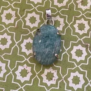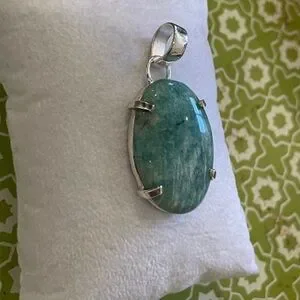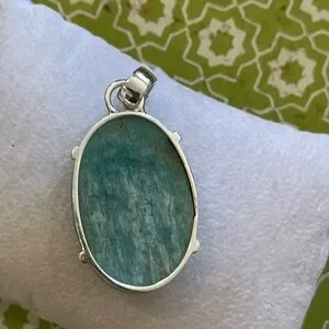 Natural Amazonite Oval Pendant – Blue Green Color Silver Plated - Brand New