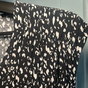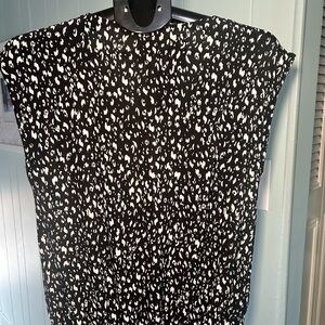 Stylish black and white top/shell with a unique animal print pattern. Perfect for any occasion.