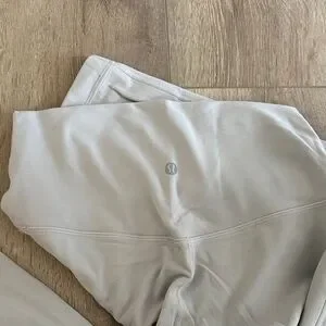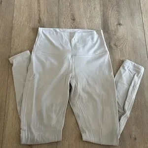 Stylish light gray high-waisted leggings. Perfect for workouts or casual wear.