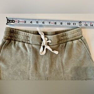 Gently loved, excellent condition. Very cozy ribbed fabric with drawstring, elastic waist, patch pockets, and straight leg.