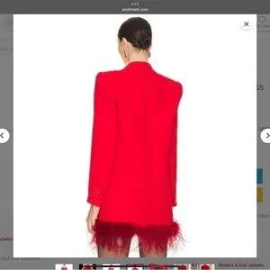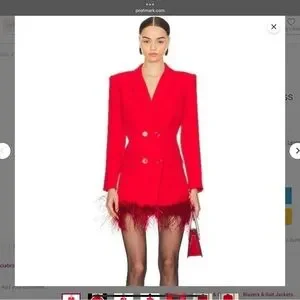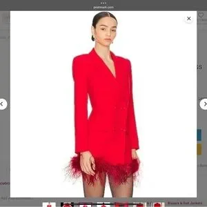 Absolutely stunning statement blazer dress from NBD (sold at Revolve). Brand new without tags — never worn. This bold red double-breasted blazer dress features a luxe tailored silhouette with a dramatic feather-trim hem that’s perfect for holiday events, parties, photos, or nights out.