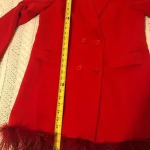NBD Red Feather-Trim Blazer Dress – Size S (Runs Large) – NWTW