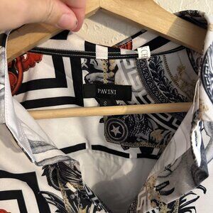 Pavini Long Sleeve Button Up Gold Baroque Lion Dress Shirt