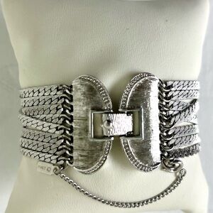 Vintge Monet Silver Tone Multi Strand Textured Chunky Bracelet With Safety Chain