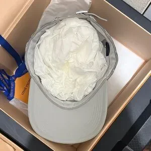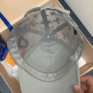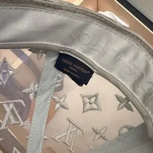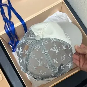 Stylish Louis Vuitton hat with monogram pattern. Elegant gray and white colors. Louis Vuitton lovers like new only been tried on once