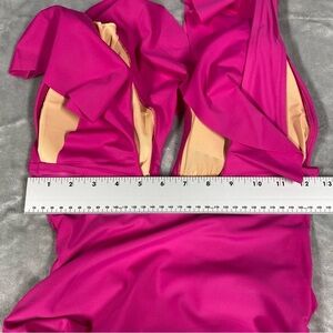 NEW J. Crew Ruched Ruffle One Piece Swimsuit Deep V Neck Size 8 Pink Radiant Fuchsia