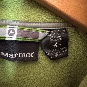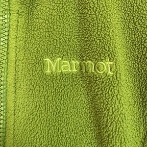 Vibrant lime green fleece by Marmot. Features full zip and stand-up collar. Cozy! Excellent condition. Size S.