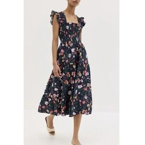 Hill House Navy Peony Floral Ellie Nap Midi Dress Size XXL Pockets
