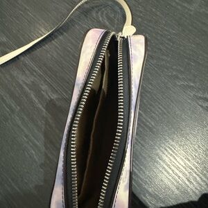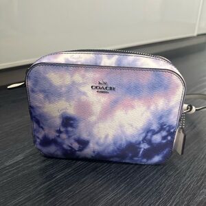 Super cute Coach crossbody bag featuring a unique purple and blue tie-dye pattern. This compact camera-bag silhouette is perfect for everyday wear and fits all the essentials. Finished with silver-tone hardware, top zip closure, and an adjustable crossbody strap for comfortable hands-free carrying.