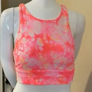 Lululemon Energy Bra High Neck LongLine Coral /Pink /Yellow Floral $58 NWOT