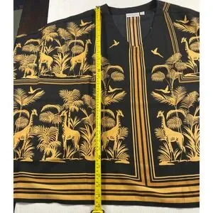 Belle by Kim Gravel 1X Safari Giraffe Print Kaftan Top Black Gold Oversized Boho