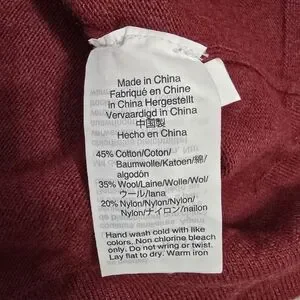 Fabric: 45% cotton, 35% wool, 20% nylon