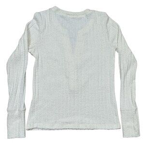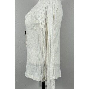 Ivory Ribbed Henley Long-Sleeve Sweater Womens Medium Button Detail Lightweight