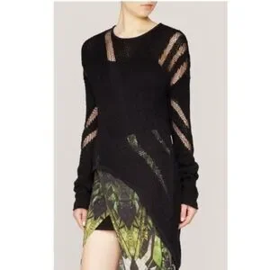 Helmut Lang Intarsia asymmetrical sweater exclusive for intermix. Chic open weave pattern. Black, size medium, very good used condition.