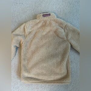 Soft sherpa pullover with navy trim. Features a zip pocket and half-zip front. Perfect for winter and cold days. Very warm and soft. Size M (12-14). Used very good condition.