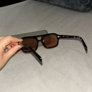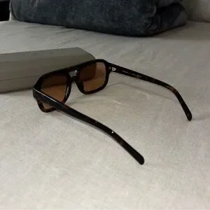 “The Dixie is a vintage-inspired aviator made from choc tort acetate paired with a cinnamon colored lens. This style not only flatters the face, but the color combination makes it the ultimate staple piece. This style is unisex.”