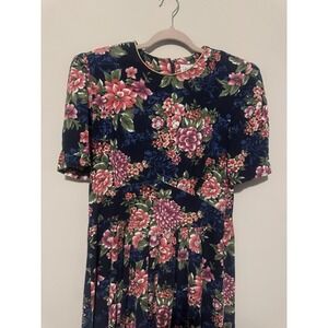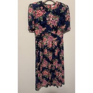 Miss Dorby Dress Floral Cottagecore Gold Buttons 80s 90s Sz 14 Floral Vintage